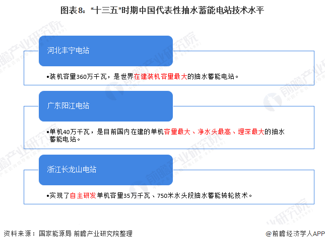“十三五”期间,随着一大批标志性的工程相继建设投产,我国抽水蓄能电站工程技术水平显著提升。例如,河北丰宁电站,是世界在建装机容量最大的抽水蓄能电站,装机容量达360万千瓦;广东阳江电站,单机40万千瓦,是目前国内在建的单机容量最大、净水头最高、埋深最大的抽水蓄能电站。