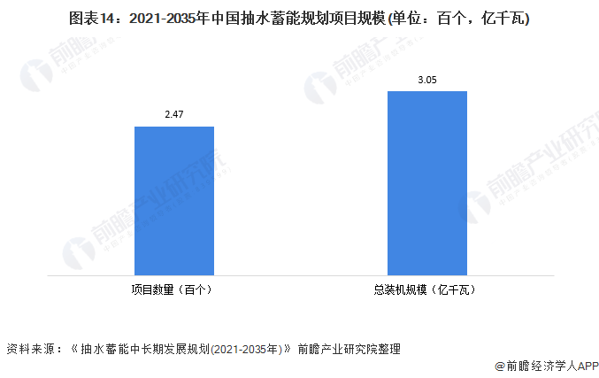 同时,根据各省(区、市)开展的规划需求成果,综合考虑系统需求和项目建设条件等因素,《抽水蓄能中长期发展规划(2021-2035年)》中提出的抽水蓄能储备项目247个,总装机规模约3.05亿千瓦。