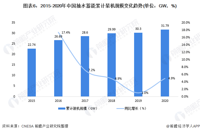 在装机规模方面,2015-2020年,我国抽水蓄能装机规模稳步增长,截至2020年末,我国抽水蓄能累计装机规模已达31.79GW,同比增长4.9%,已建和在建规模均居世界首位。