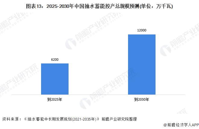 根据《抽水蓄能中长期发展规划(2021-2035年)》,其中提出到2025年,抽水蓄能投产总规模6200万千瓦以上;到2030年,投产总规模1.2亿千瓦左右;到2035年,形成满足新能源高比例大规模发展需求的,技术先进、管理优质、国际竞争力强的抽水蓄能现代化产业,培育形成一批抽水蓄能大型骨干企业。