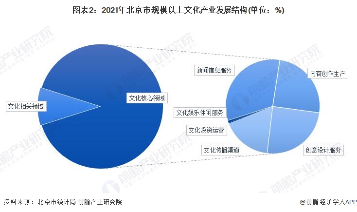 从结构来看,文化核心领域收入合计15848.3亿元,同比增长17.8%,占总收入的90.2%。其中,文化娱乐休闲服务和内容创作生产分别同比增长38.5%和30.8%。新闻信息服务、文化传播渠道分别同比增长21.5%、12.5%。创意设计服务和文化投资运营服务对文化产业增长的贡献率分别为6.2%和11.1%。