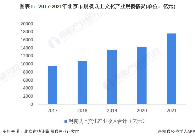 据北京市统计局公布的信息显示,2021年北京市规模以上文化产业实现营业收入17563.8亿元,同比增长17.5%,在全国占比14.75%,实现利润总额1429.4亿元,同比增长47.5%,吸纳从业人员64万人,同比增长4.8%。