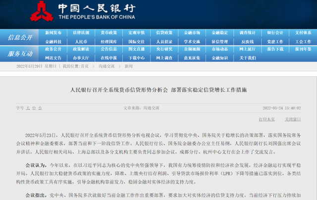 同日,央行、银保监会召开主要金融机构货币信贷形势分析会,研究部署加大信贷投放力度。