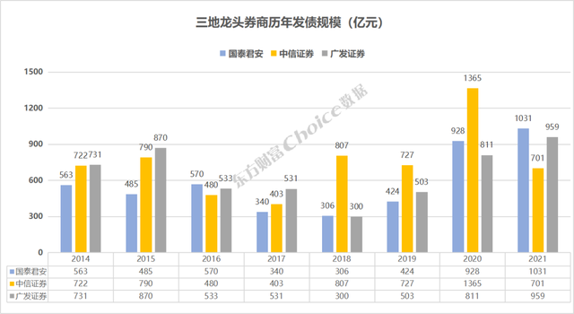 国信证券、国泰君安、广发证券在大型券商中不但融资能力名列前茅,融资成本也控制得非常优秀,在500亿债券存量规模的梯队中名列前三。