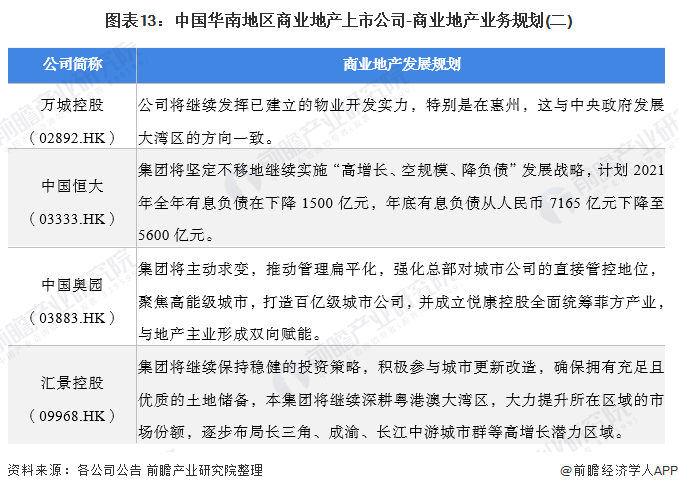 4、华南地区商业地产行业上市公司商业地产业务规划对比