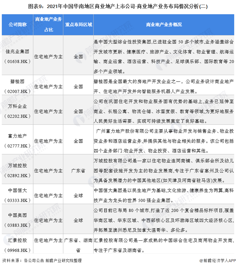 2、华南地区商业地产行业上市公司业务布局对比