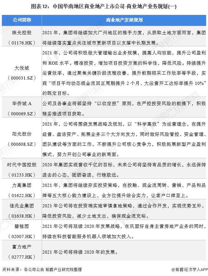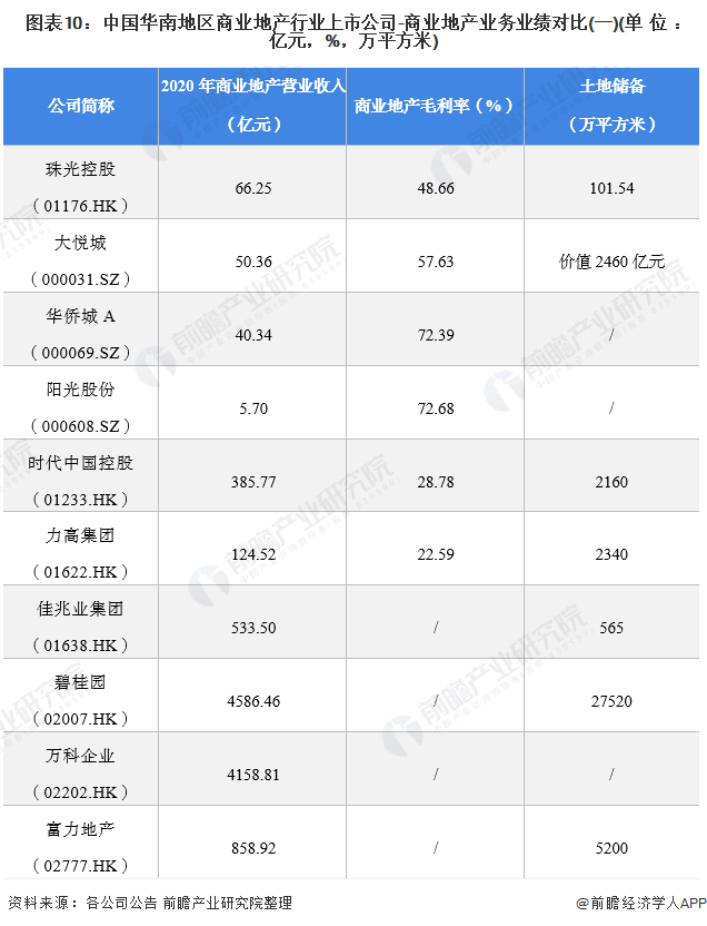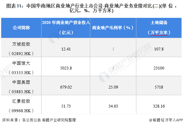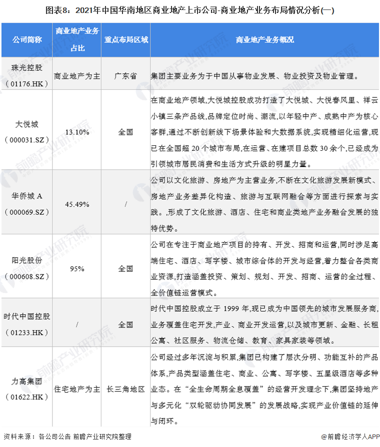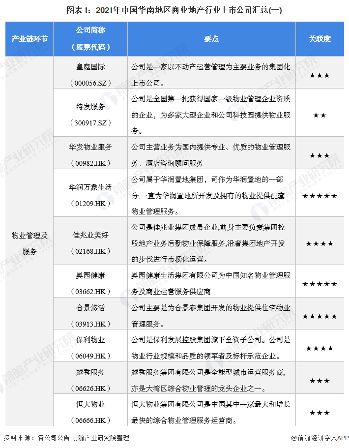 1、华南地区商业地产行业上市公司汇总