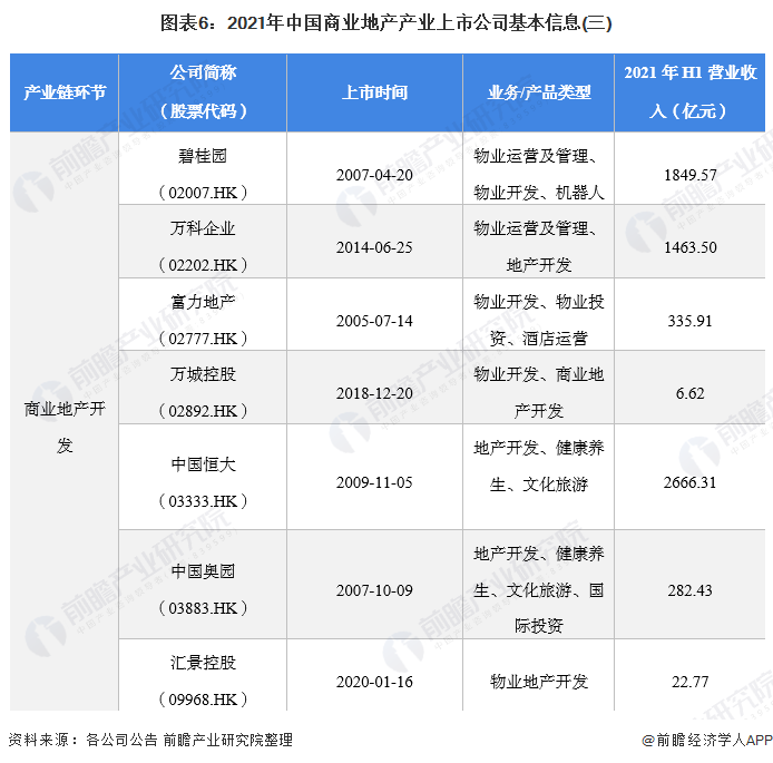 商业地产开发上市公司:珠光控股(01176.HK)、大悦城(000031.SZ)、华侨城A(000069.SZ、阳光股份(000608.SZ)、陆家嘴(600663.SH)、时代中国控股(01233.HK)、力高集团(01622.HK)、佳兆业集团(01638.HK)、碧桂园(02007.HK)、万科企业(02202.HK)、富力地产(02777.HK)、万城控股(02892.HK)、中国恒大(03333.HK)、中国奥园(03883.HK)、汇景控股(09968.HK)。