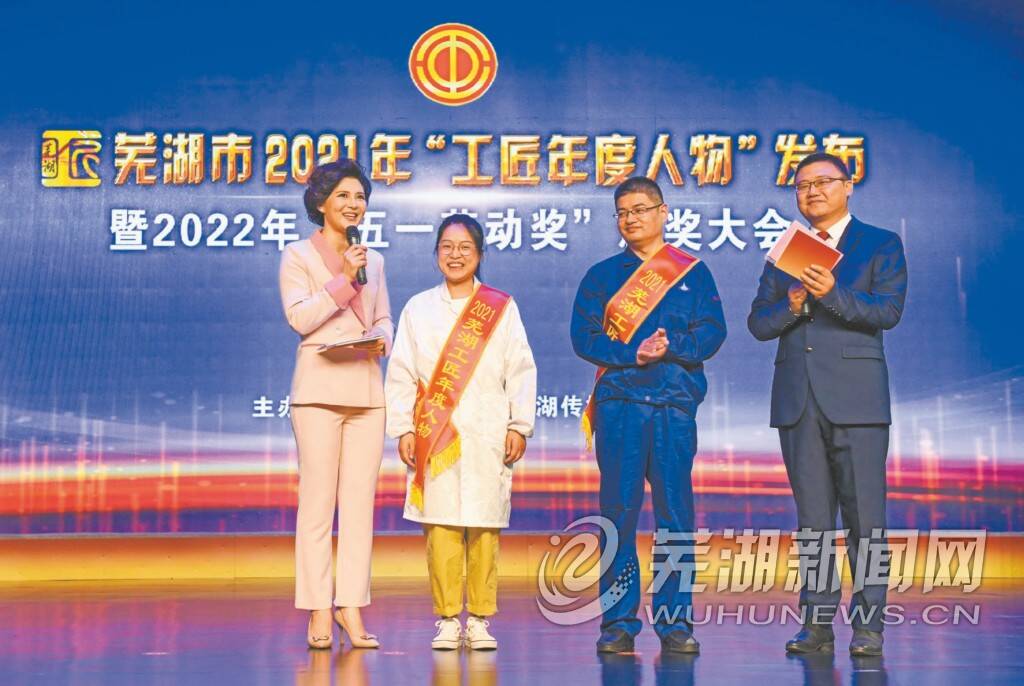 5月31日下午,芜湖市2021年“工匠年度人物”发布暨2022年“五一劳动奖”颁奖大会在芜湖传媒中心演播大厅举行。10位2021年“芜湖工匠年度人物”名单揭晓,他们分别亮相舞台中央被授予奖杯,他们的精彩奋斗事迹短视频在大屏幕上播放。现场观众们一起聆听了这些奋斗者的故事,感知了他们是如何执着专注、精益求精、一丝不苟、追求卓越,并用热烈的掌声向他们致敬。