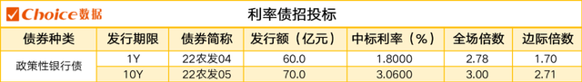 从发行量看,在利率债方面,政策性银行债发行2只,共130.0亿;地方政府债发行1只,共13.7亿。