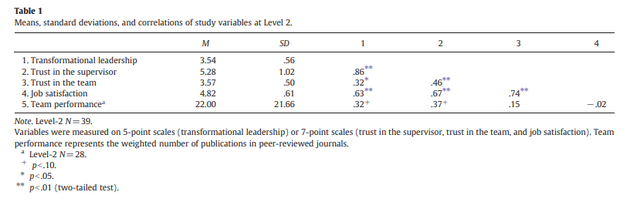 再做相关分析描述统计做完了之后我们有可能会需要做一下各个变量间的两两相关,期刊中常见的比较标准的相关结果表示方法如下,变量均值和标准差占两列,然后相关矩阵放后面: