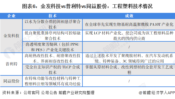 金发科技在耐高温特种工程塑料方面开发出了固相悬浮聚合技术、低自聚低重排序列结构可控熔融聚合技术及高透明度聚芳醚砜(包括PPSU和PES)产业化关键技术,实现了生物基耐高温聚酰胺PA10T以及LCP材料的产业化;普利特具备拥有完全自主知识产权的TLCP合成技术;同益股份在特殊功能等改性材料与特种工程塑料注塑等领域具有成功经验。