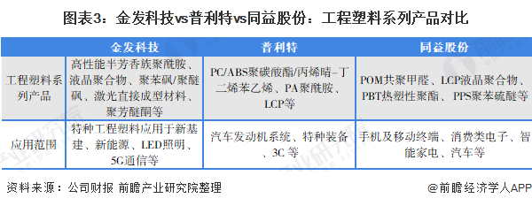 从三家企业的产品来看,金发科技生产一系列特种工程塑料产品,产品应用于新基建、新能源、LED照明、5G通信等领域;普利特、同益股份工程塑料产品分别应用于汽车发动机系统、特种装备、3C等以及手机及移动终端、消费类电子、智能家电、汽车等领域。
