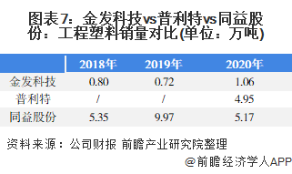 从工程塑料类产品销量来看,2018-2020年,金发科技特种工程塑料销量呈上升趋势,同益股份2020年工程塑料销量最大,达5.17万吨。