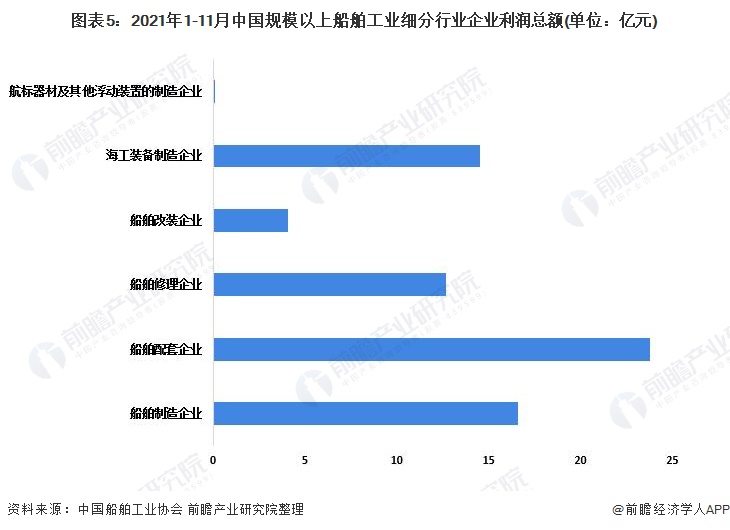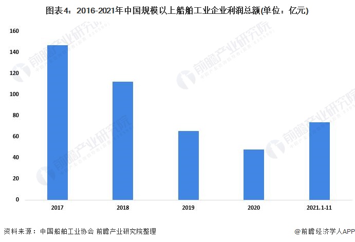 2021年1-11月,规模以上船舶工业企业实现利润总额73.5亿元,同比增长56.4%。