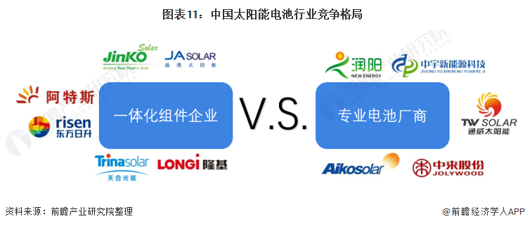 从企业品牌竞争来看目前我国太阳能电池行业竞争格局根据企业经营范围可以分为光伏一体化组件生产企业和专业电池生产厂商,两种类型企业均具有代表企业。
