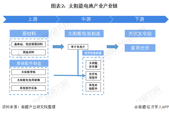 我国光伏行业于2005年左右受欧洲市场需求拉动起步,十几年来实现了从无到有、从有到强的跨越式大发展,建立了完整的市场环境和配套环境,已经成为我国为数不多、可以同步参与国际竞争并达到国际领先水平的战略性新兴产业,也成为我国产业经济发展的一张崭新名片和推动我国能源变革的重要引擎。太阳能电池属于光伏产业整体的一环,太阳能电池制造行业下游产业主要光伏发电市场,上游则主要是原材料行业。