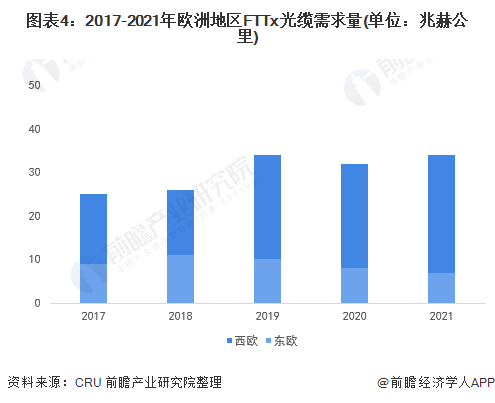 欧洲FTTx光缆需求量呈波动趋势
