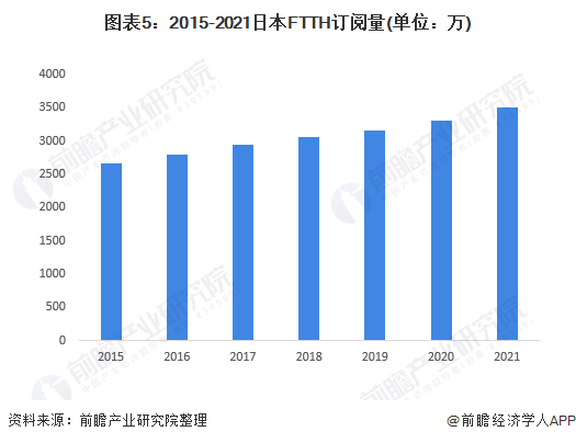 日本FTTH订阅量呈上升趋势