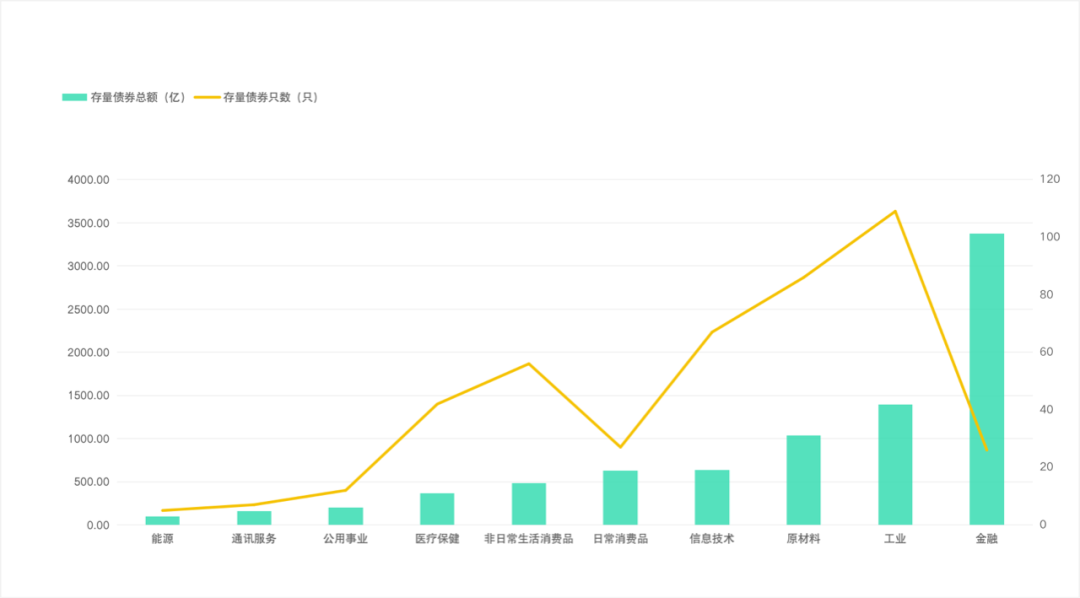 据Choice数据显示,截至2022年6月16日,可转债市场存续数量441只,存续规模8385.87亿元。从目前市场存量债券的行业分布来看,金融行业以存量债券总额3375.5亿元位居榜首,是位居第二的工业行业存量债券规模的2.4倍。