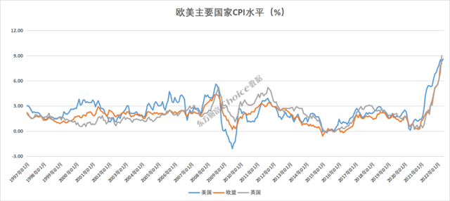 实际上,高通胀已成为全球性的问题。Choice数据显示,随着食品和能源价格飙升,欧元区5月调和CPI初值同比上升8.1%,再创历史新高。英国4月消费者价格指数(CPI)同比飙升了9%,创近四十年来新高;该国央行预计未来几个月CPI通胀将超过9%,10月通胀率将高于11%。
