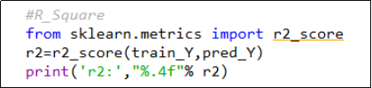 R_Square(Coefficientof determination):R方,决定系数,反映的是模型拟合数据的准确程度。一般R_Square取值范围为0~1,值越接近1,说明方程X变量对目标Y的解释能力越强,模型训练拟合程度也较好,在实际业务中,R_Square>0.4时说明模型性能较好。R_Square原理计算公式如下,Python代码实现如图11所示。