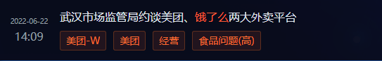 6月20日—21日,武汉市市场监管局约谈美团、饿了么外卖平台武汉区域相关负责人员,要求按照省、市网络餐饮食品安全问题专项整治要求,组织入网餐饮服务单位开展自查自纠。两家外卖平台武汉区域相关负责人表示,将进一步落实网络餐饮服务第三方平台主体责任,规范入网餐饮单位食品安全管理。(Choice天眼,中国食品报网)