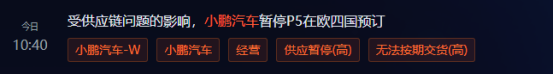 受供应链问题的影响,小鹏汽车暂停P5在欧四国预订