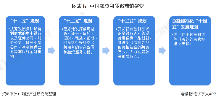 “十一五”时期融资租赁的政策主要强调行业规范发展,“十二五”时期开始关注融资租赁对于支持实体经济的服务能力。经历了前期的发展,中国已经逐渐建立起行业快速发展的环境,于是,“十三五”明确提出大力发展融资租赁业务,到了“十四五”期间行业的监管体系进一步完善,为行业健康发展提供了基础。