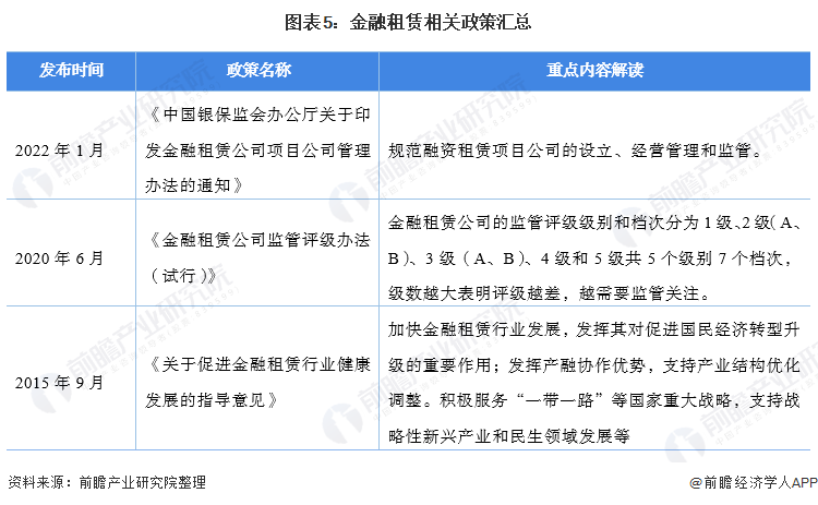 金融租赁作为融资租赁的重要组成部分,也是政策重点关注的领域。金融租赁公司作为金融机构,存在一定的经营风险,所以金融租赁公司相关政策主要以加强金融租赁公司监管、促进行业健康发展为主。