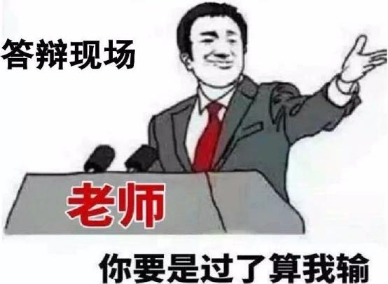 交完毕业论文还有答辩这一环节,你会被各种笑眯眯的导师打量,思考,然后针对你毕业论文的内容,跳出疑问点问你。