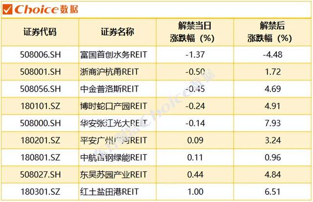 但总体来看,首批REITs解禁影响相对有限。解禁当日,各REITs涨跌互现,其中富国首创水务REIT当日下跌幅度最大,为1.37%;红土盐田港REIT当日上涨幅度最大,为1.00%。此后二级市场价格迅速反弹,截至7月5日,除富国首创水务REIT外,其余8只REITs解禁后累计涨跌幅均转正。