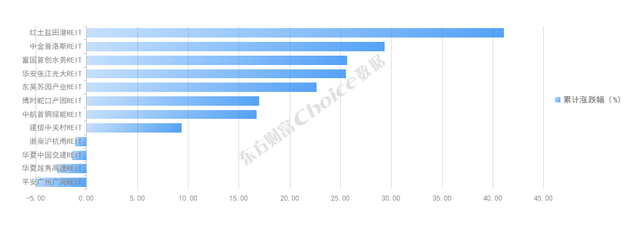 分类型来看,仓储物流REITs表现最好,平均累计涨跌幅为35.21%,其次为环保REITs,平均累计涨跌幅21.21%,表现最差的为2只收费公路REITs,其中平安广州广河REIT累计跌幅最大,达-5.31%。
