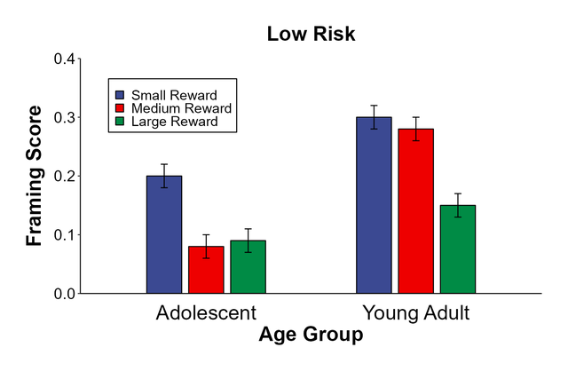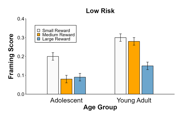 labs( x = "Age Group",y = "Framing Score",fill = NULL,title = "Low Risk")上面的代码,x = "Age Group",y = "Framing Score"这都很简单,因为我们的图例是针对fill的,那么此时fill在labs中就是图例的title,上面的代码将图例的title拿掉了,同时加上了整个图的title。