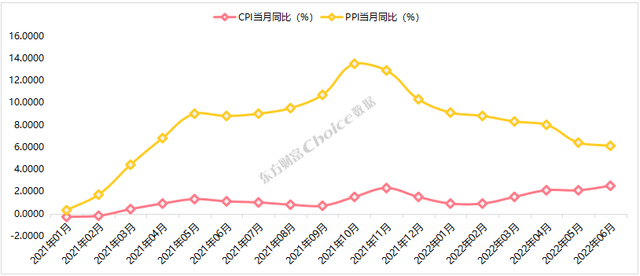 2022年7月9日,国家统计局公布6月价格数据。数据显示,6月CPI同比上涨2.5%,涨幅比上月扩大0.4个百分点,环比由上月下降0.2%转为持平;PPI同比上涨6.1%,涨幅比上月回落0.3个百分点,环比由上月上涨0.1%转为持平。