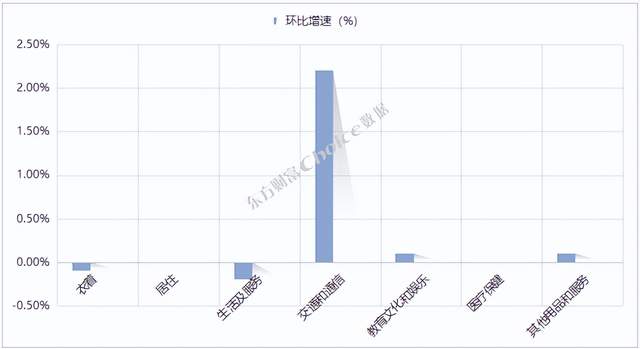 此次CPI价格中,非食品项环比上涨0.4%,高于5月的0.1%。从细分项来看,交通和通信环比增速最高,为2.2%;生活及服务环比增速最低,为-0.20%。