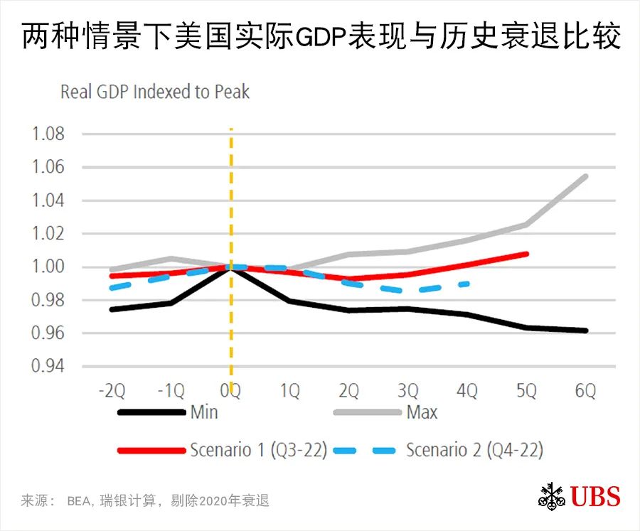美国和欧元区的经济衰退风险正在上升。在6月份部分经济数据出炉后,我们针对美国的硬数据模型给出的衰退概率进一步上升至96%。欧洲方面,软数据模型已开始发出预警信号(经济衰退概率为30%)。瑞银全球宏观和策略团队分析了认为最有可能出现的4种经济衰退情景,将其深度和持续时间与其他衰退进行了比较,并阐述了对市场的潜在影响。