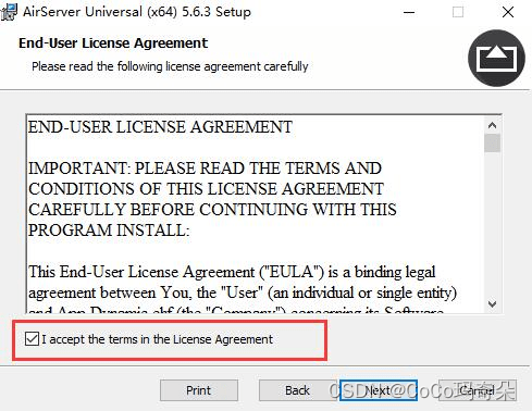 勾选“I accept the terms in the License Agreement”同意证书协议。