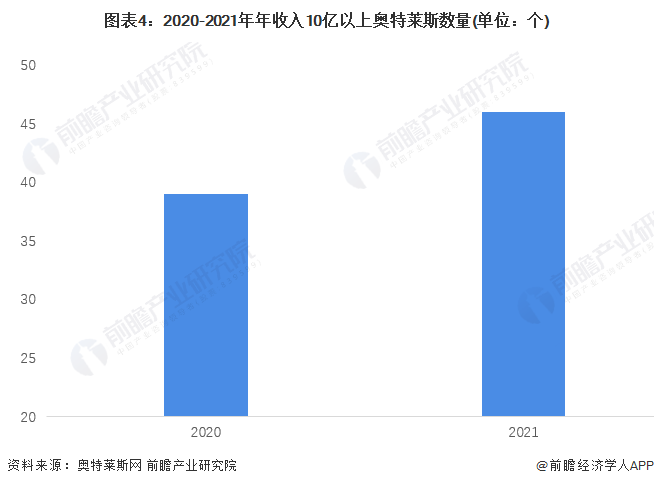 综上所述,中国新增奥特莱斯数量和面积在波动下降,但是年收入超10亿元奥特莱斯数量增加至46个,增幅达到18%。上海青浦百联奥特莱斯2021年收入超50亿元,排名行业第一。
