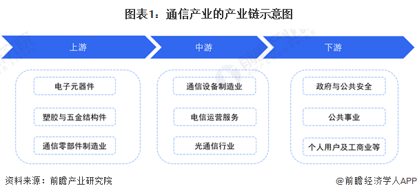 通信产业的下游行业主要为政府与公共安全、公用事业以及工商业等行业,这些下游市场的需求变化和产业政策直接影响产业的经营效益和持续发展。同时,通信产业也能更大程度地促进下游行业的快速发展,提高下游行业的生产效率,具体产业链布局如下图: