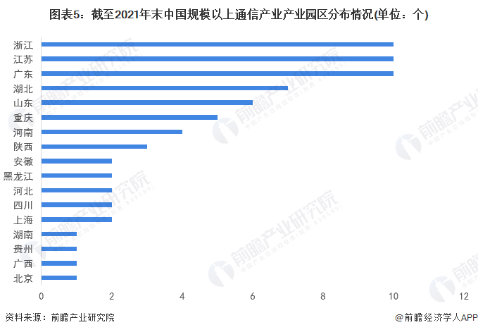 通信产业产业园区分布图:广东、浙江、江苏地区最多