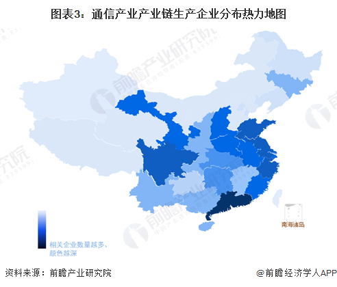 通信产业产业链区域热力地图:东南沿海地区分布最集中
