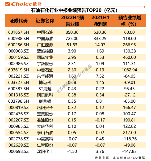 石油石化行业已披露业绩预告的23家公司业绩预告上限总额1633.86亿元,全行业去年同期利润总额为1582.88亿元。其中,中国石油、中国海油业绩增幅分别60%、118%。