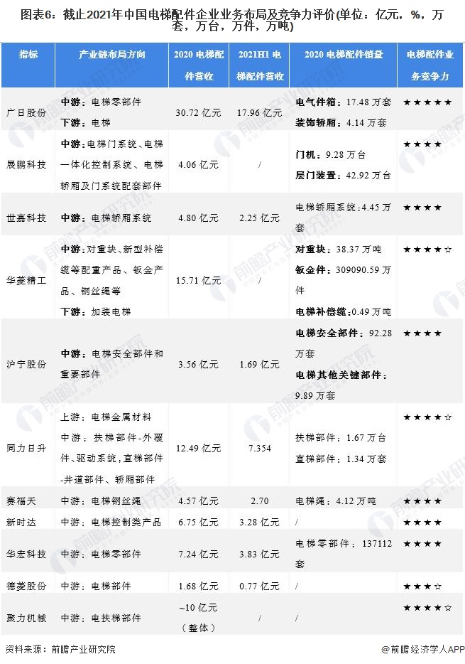 4、中国电梯配件行业企业布局及竞争力评价