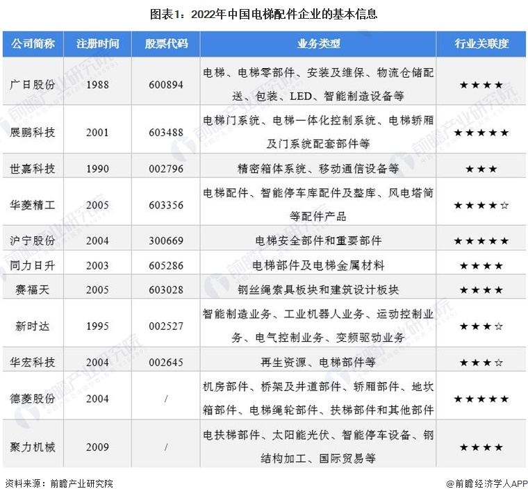 1、中国电梯配件行业竞争梯队