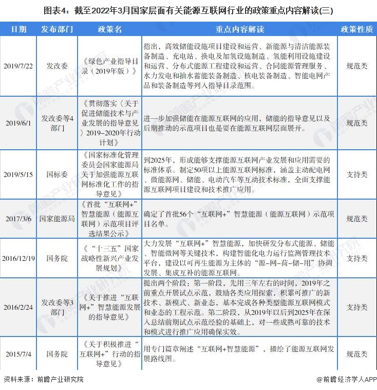 自2015年以来,国务院、国家发改委、能源局等多部门都陆续印发了支持、规范能源互联网行业的发展政策,内容涉及能源互联网行业历年的发展目标、能源互联网在实体层的建设布局等: