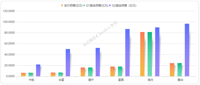 根据目前已出季报的6只同业存单指数基金的规模变化来看,均较发行时有所上升。其中,鹏华中证同业存单AAA指数7天持有期和富国中证同业存单AAA指数7天持有期规模变动幅度最大,Q2基金规模较发行时分别增长72.46亿元和69.04亿元。