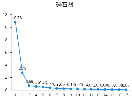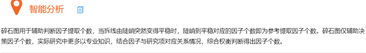 由于此次案例分析着重描述利用因子分析计算权重所以对于因子提取、信息浓缩结果将简单进行描述,如果想要详细的分析结果请登录SPSSAU上传数据进行分析。