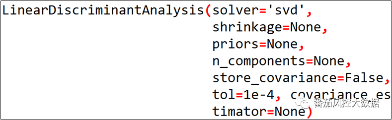 在python环境,可以通过调用sklearn库LinearDiscriminantAnalysis()函数实现LDA,具体如图1所示,这里简要介绍下其中部分重要参数的设置与功能。