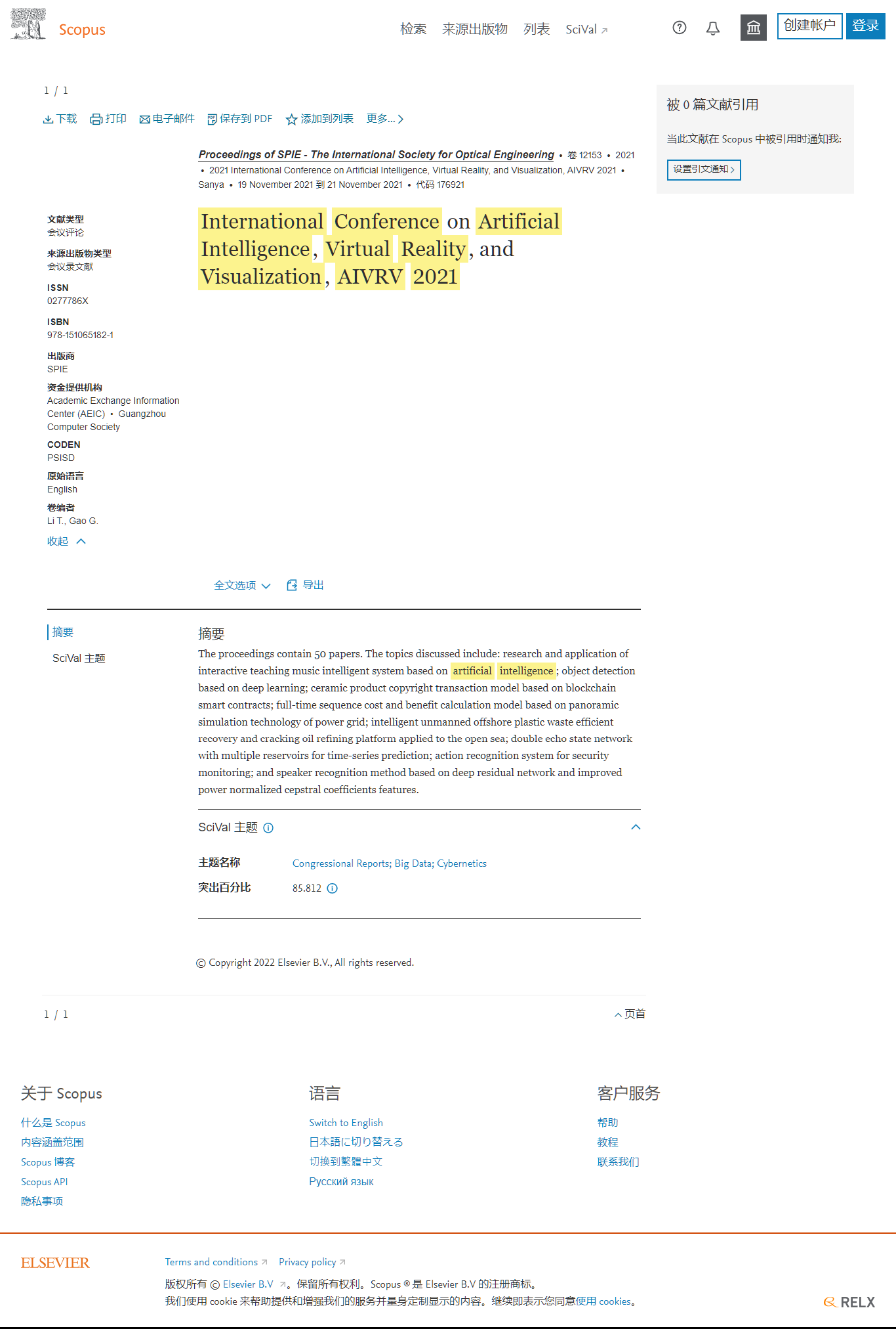 AIVRV 2022所有的投稿都必须经过2-3位组委会专家审稿,经过严格的审稿之后,最终所有录用的论文将由SPIE - The International Society for Optical Engineering (ISSN: 0277-786X)独立出版,见刊后提交至EI Compendex、Scopus检索。